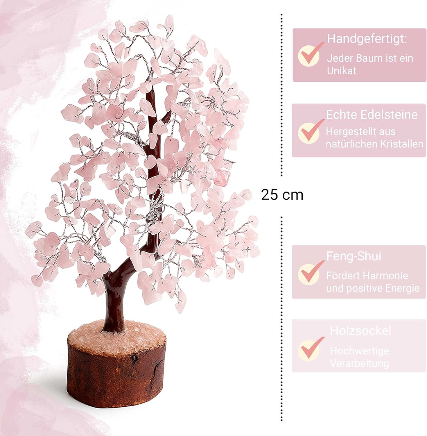 Edelsteinbaum – Rosenquarz – Silberdraht